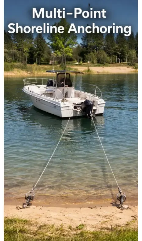For a more permanent setup, many boaters create a multi-point boat anchoring system.